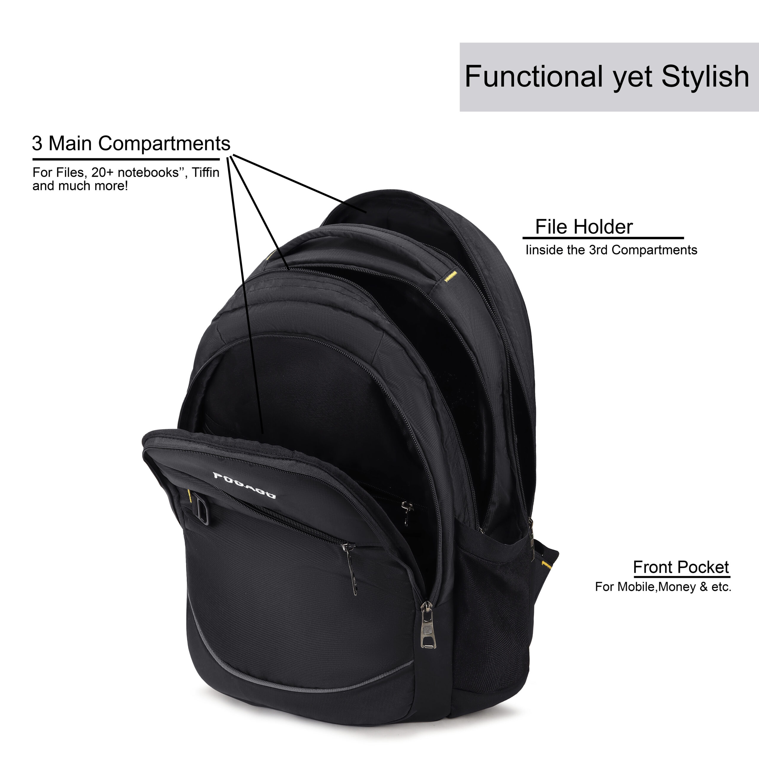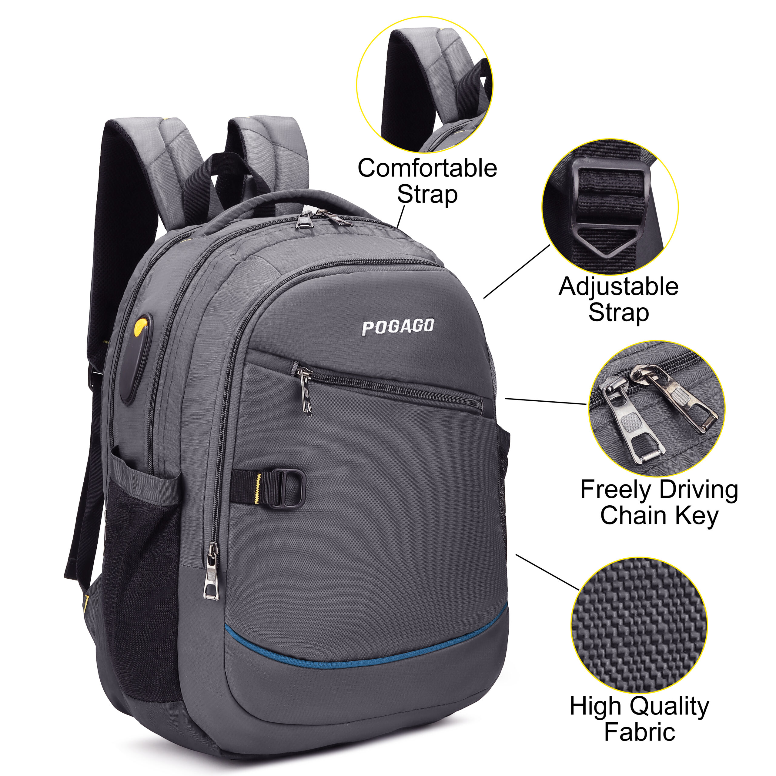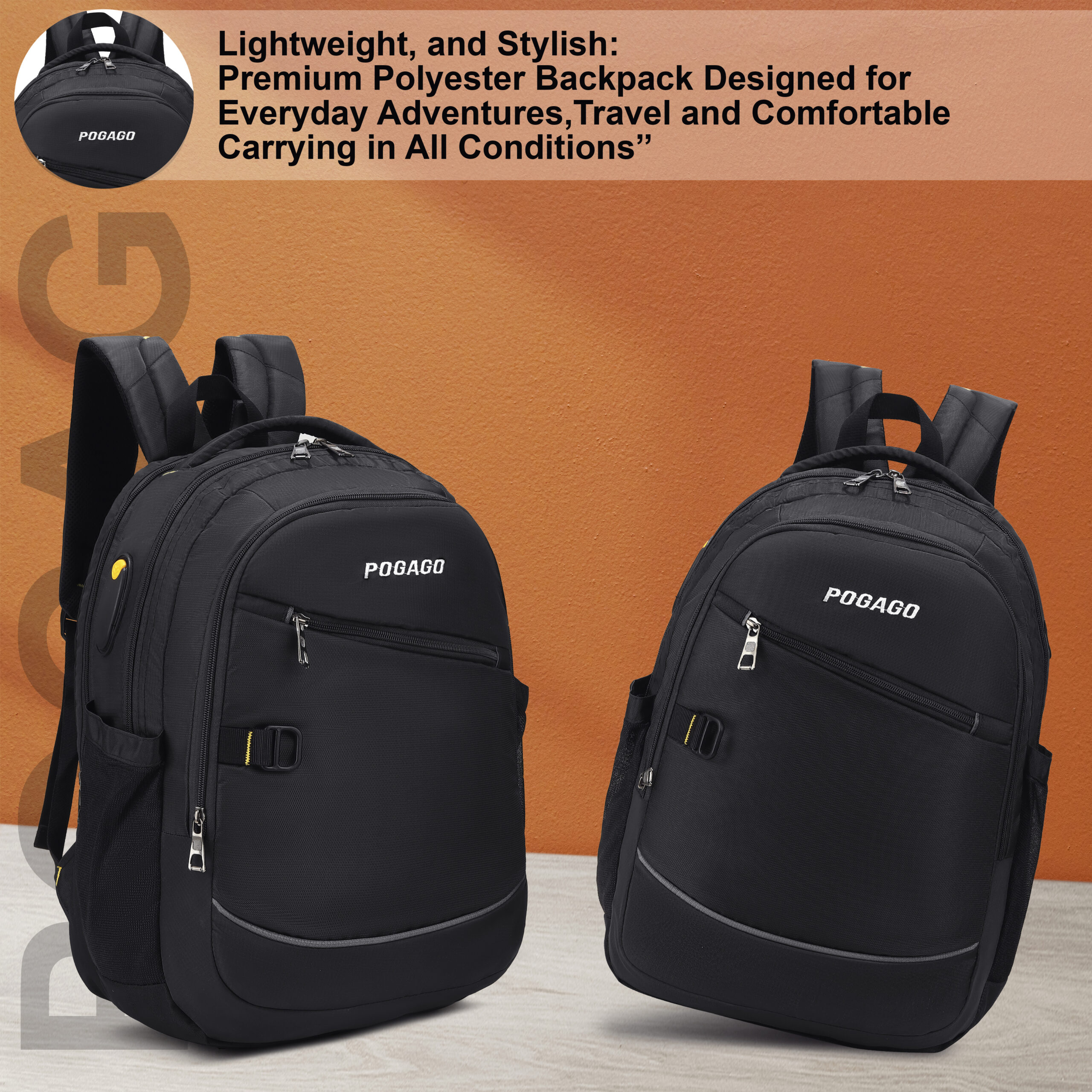 POGAGO Men’s Water-Resistant Laptop Backpack for Work, School & Travel The POGAGO Men’s Backpack is the ideal blend of style, comfort, and durability, designed for those on the go. Whether you’re heading to work, school, or traveling, this backpack offers the perfect solution to keep your belongings organized and safe. Spacious & Organized: Featuring a dedicated compartment for laptops up to 17 inches, this backpack accommodates all your essentials, including books, tablets, and accessories. The interior layout ensures quick and easy access to your items. Water-Resistant Protection: Crafted from premium water-resistant materials, this backpack provides reliable protection against rain and spills, keeping your belongings dry and secure in unpredictable weather conditions. Reflective Strip for Safety: Stay visible even in low-light environments with the reflective strip, ideal for evening commutes or nighttime walks. Comfortable & Adjustable Straps: Designed for all-day wear, the ergonomic straps reduce shoulder and back strain. Adjustable for a personalized fit, this backpack ensures maximum comfort and support no matter the day’s activities. Convenient Key Chain Loop: Equipped with a handy key chain loop, you can easily attach keys or small accessories for quick access. Premium Durability: Made with high-quality, durable fabric, this backpack withstands everyday use while maintaining its sleek, modern look. Whether you’re commuting to the office, attending classes, or embarking on a weekend adventure, the POGAGO Men’s Backpack delivers the perfect combination of functionality and style.